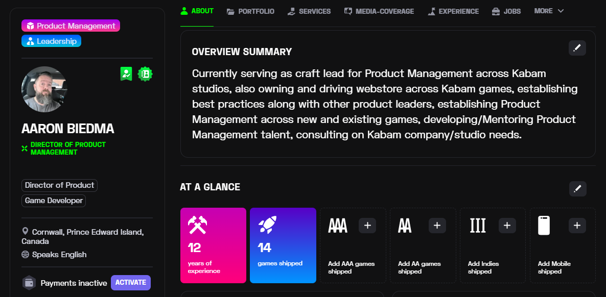I am a seasoned and driven product leader. I most recently served as a Director of Product Management where I built up the discipline from scratch at the company as well as launched/ran multiple products. Over the years I have had a wide experience working on various platforms from PC based major and minor platforms, web based, and mobile. I have always thrown myself into whatever product and new platforms/experiences and have learned quickly so I can apply my experience and knowledge to drive my teams to success. I have been involved in all areas of production on games as well as during all phases of games through their pitch, planning/development (including P&Ls), release, and live service.